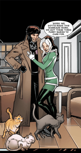 Mr & Mrs X are the pair embarking on married life, after their spontaneous wedding in X-Men Gold. It starts with them on their honeymoon in space, but then – of course – they end up caught up in some Shi-ar space bullshit, which includes Deadpool. Again, it was really fun, and it ended in a lovely place for their relationship, which is hopeful for the future. Also, Gambit has three cats, which I am completely into, and Rouge is very prepared to be a cat mum.
