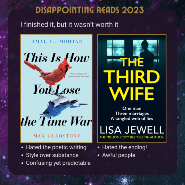 Now 2023 is drawing to a close its time to reflect on some of the books I’ve read this year! Today I’m thinking back to the books that stuck with me for the wrong the reasons. I am very careful about researching book reviews before I buy books so it can be very disappointing when something slips through the net.