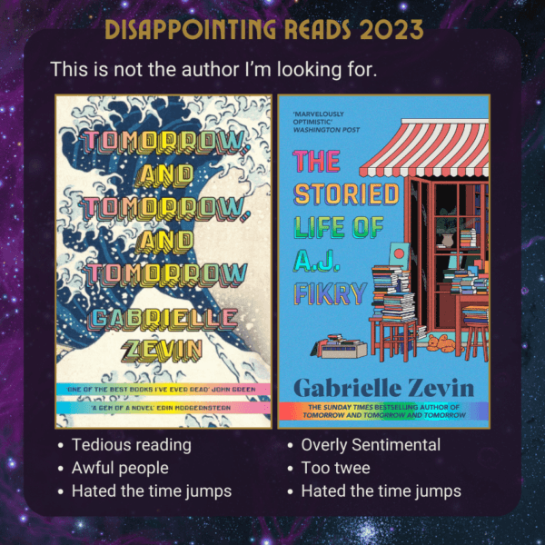 I’m 2/2 disappointments with Gabrille Zevin this year. I have concluded that as much as I enjoy her writing style and ability to create great characters, what she does with them in her stories is not for me.