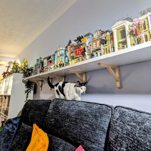 The downstairs of the house was disrupted for a few weeks while we had the floor done, and then we repainted the living room walls. The contents of the living room had to be moved into our much smaller dining room, which felt really weird, like we’d had to move into a bunker or something! We had to sit at our dining table to watch the TV, I think this in particular confused the cats, who like to sit on our laps in the evening once we finish eating. We had to try to keep them just in there, along with the connecting kitchen and the utility room. Kitler didn’t mind too much because she generally likes to sleep all day on the radiator, but Valentine did not like being confined to just three rooms, especially when she could see us through the glass diving doors! I felt really bad about it… But it was better than risking getting blue paint all over the cat/house… and cat fur in our new walls!
