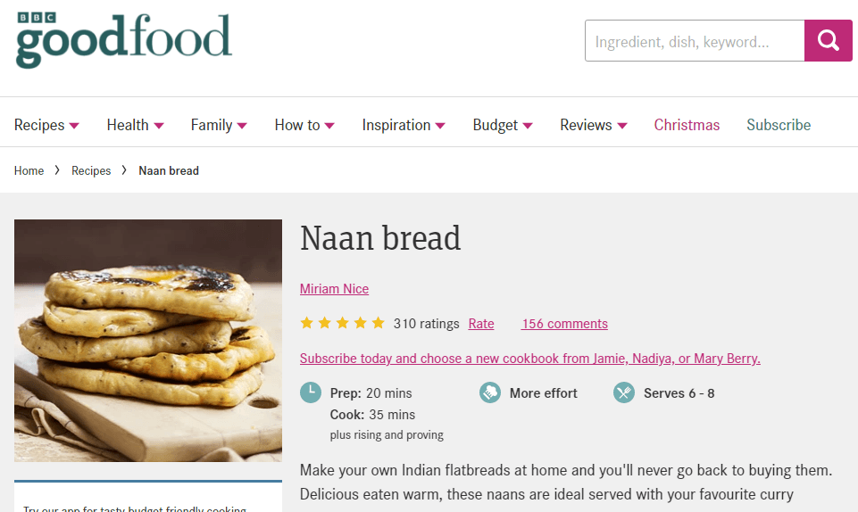 I used the BBC Good Food recipe by Miriam Nice. We have activated yeast in the cupboard we use for pizza dough, so I dumped all the ingredients in the stand mixer which made it quick and easy. I had a bit of trouble with getting the right water to flour ratio (as did many people in the comments) but it all turned out. I made this after lunch to give it plenty of time to proof. The dough already smelled like delicious naan!